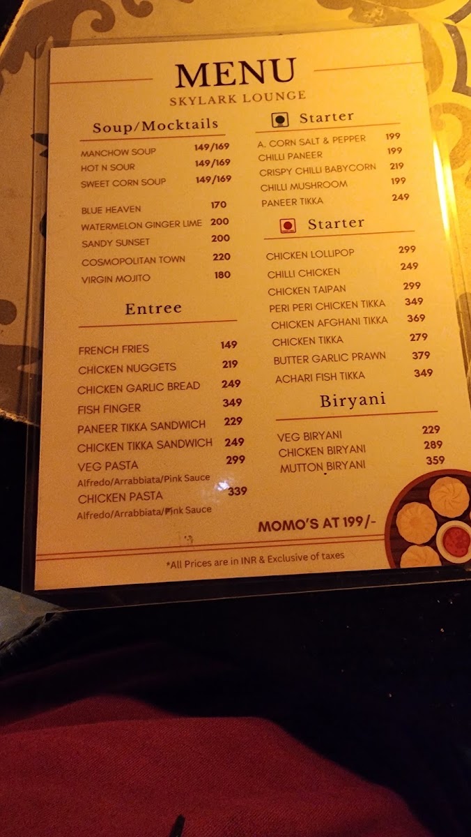 The culinary offerings are where Skylark Lounge really shines. Known for its exquisite blend of Indian flavors, the menu features an array of tantalizing starters, entrees, and biryanis that cater to every palate. Try the Chilli Chicken (₹249) for a spicy kick or indulge in the succulent Butter Garlic Prawn (₹379) that melts in your mouth, reflecting the skill and creativity of the kitchen team. For a true taste experience, the Paneer Tikka (₹249) and Mutton Biryani (₹359) are must-tries that have charmed the taste buds of many patrons.